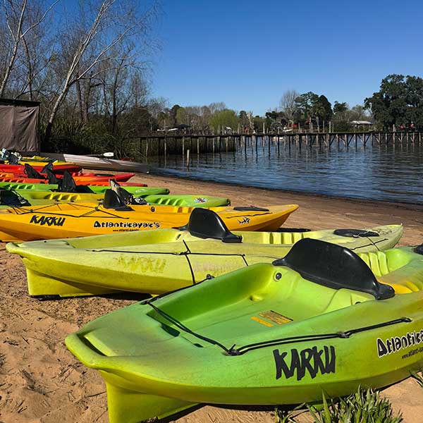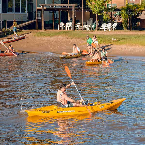 Para la actividad damos una charla en la playa de 15 minutos: donde hablaremos de los conceptos básicos para poder remar, de cómo puedo llevar el rumbo del kayak, y cuestiones a tener en cuenta de seguridad en el río. Luego haremos unas prácticas iniciales en el agua con los kayaks para ir incorporando los conceptos vistos, y por último terminamos saliendo a remar 1hs por arroyos y ríos de la zona.